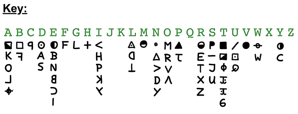 - Moje jméno je šifra: krátký 13místní kryptogram byl odeslán 20. dubna 1970 jako součást dopisu, který začíná slovy „Tady Zodiac. Mimochodem, rozluštili jste poslední šifru, kterou jsem vám poslal? Jmenuji se…” Nikdo nebyl schopen těchto 13 písmen a symbolů vyřešit, i když se mnoho lidí snažilo.