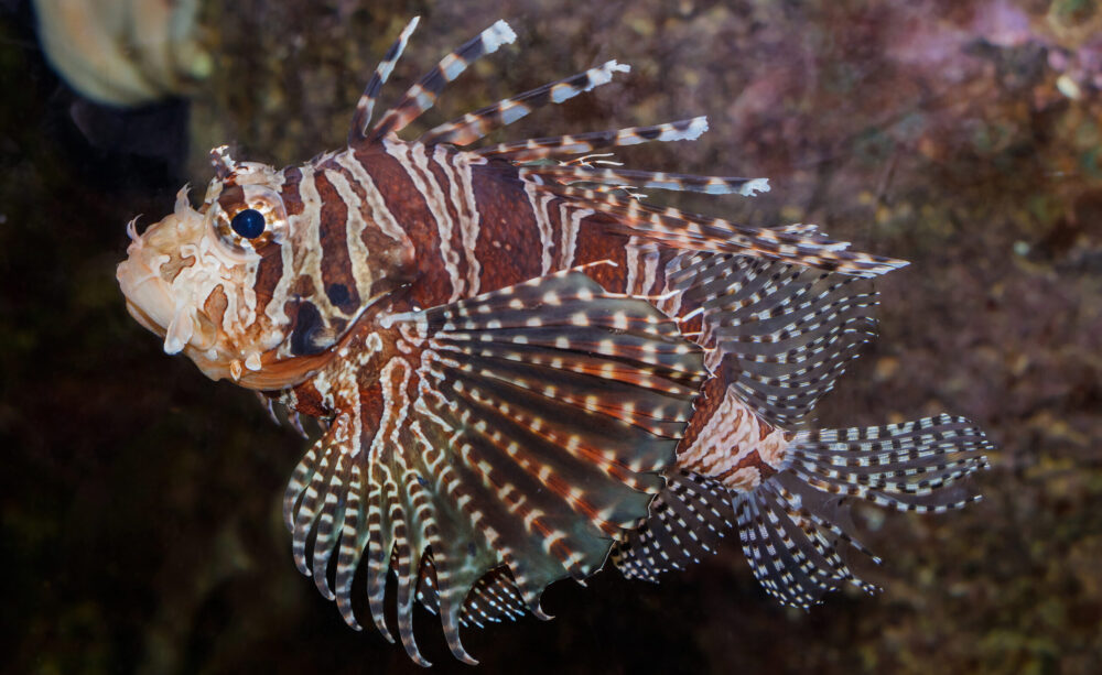 Dalším obyvatelem oceánských vod, se kterým se plavcům nedoporučuje přímý kontakt, je perutýn pruhovaný. Tato malá rybka pro původní zbarvení se také nazývala zebra. Její oblíbenou zábavou je nehybně viset někde ve stínu korálů poblíž mořského dna a plynule rozpohybovat své nezvykle dlouhé světelné paprsky ploutví. Perutýny lze snadno zaměnit za hromadu pestrobarevných řas, ale chyba může přijít draho.