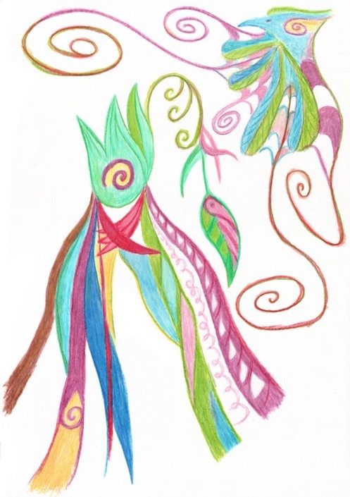 V současné době se automatická kresba stala plnohodnotnou součástí mého života. Dovolím si parafrázovat klasika – kreslím často, kreslím rád. Informace se na světlo přímo derou. Kdykoli a kdekoli. Mají podobu obrázku vytvořeného suchým pastelem ale i malůvky propiskou na kousku kancelářského papíru (obrázek 5.). Jen na okraj poznamenávám, že dlouhé školení mne dokáže nakopnout k vytvoření díla stejně dobře jako propracovaná meditace. Stačí prostě vědomí zahltit něčím, s čím není až tak v souladu. Pak hned hledá kreativní únik. Nad vyvoláním změněného stavu vědomí začínám mít kontrolu. Svými obrázky jsem obklopený. Dělají život pestřejší a zajímavější. Pomáhají mi porozumět sám sobě i ostatním. Léčí duši i tělo.